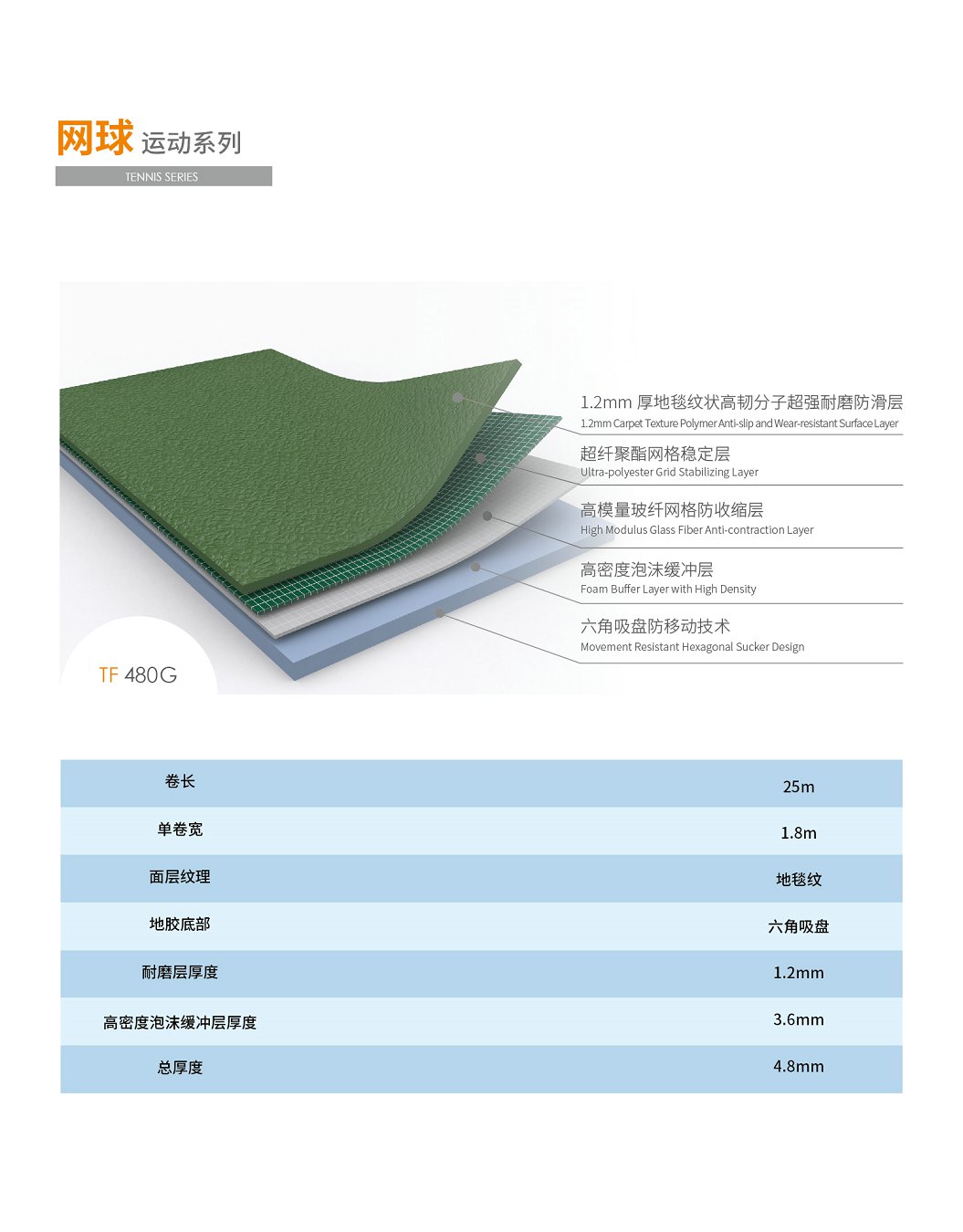 天速綜合地膠網(wǎng)球場地膠經(jīng)典木紋系列TF 480G草地綠